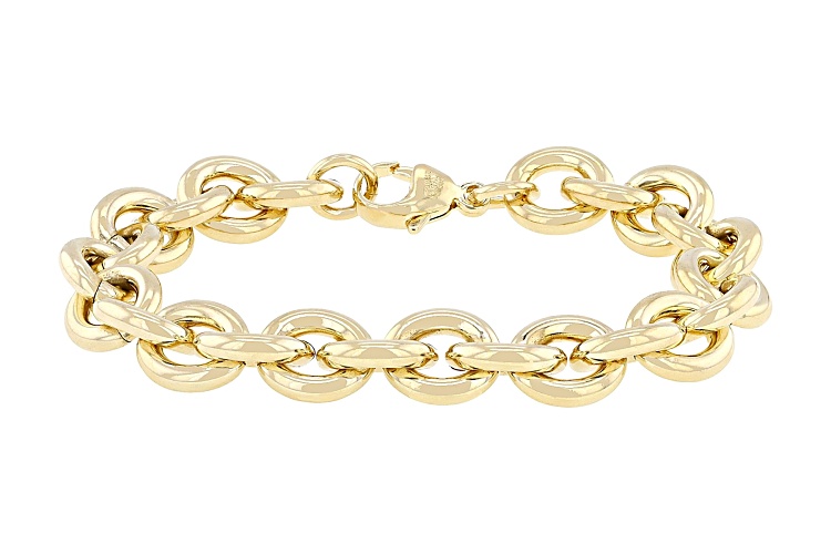• Moda Al Massimo® 18k Yellow Gold Over Bronze 11.5mm Rolo Link Bracelet - Size 7.5