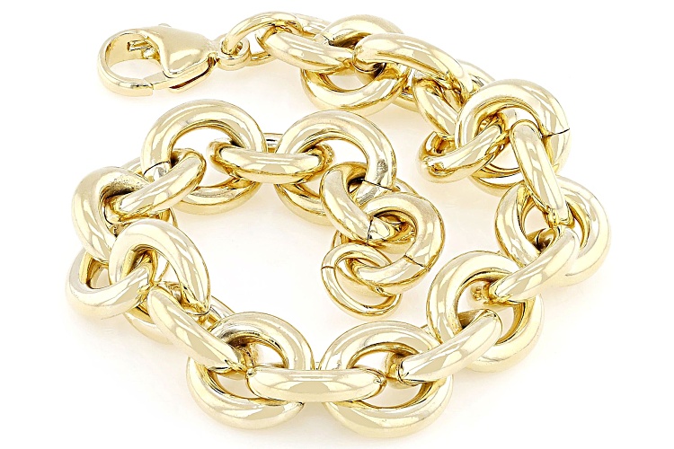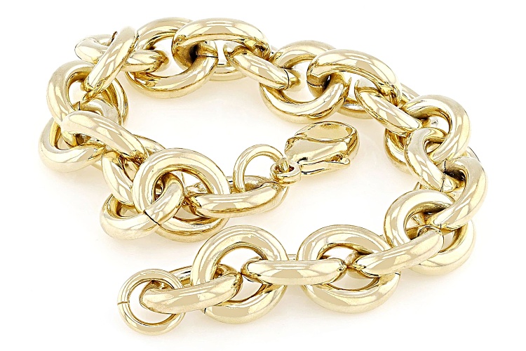 Moda Al Massimo® 18k Yellow Gold Over Bronze 11.5mm Rolo Link Bracelet. Lobster Claw Clasp Closure.