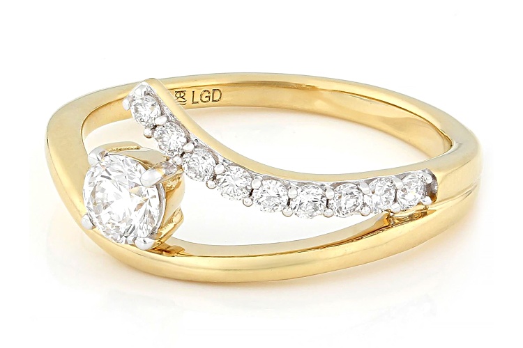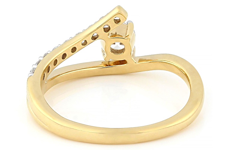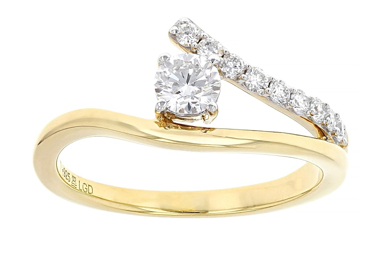 Prazana® Lab-Grown Diamonds 0.30ct round white lab-grown diamond center stone and 0.20ctw round white lab-grown diamond, 14K yellow gold over sterling silver bypass ring. Measures approximately 3/8"W. H color, SI clarity minimum.