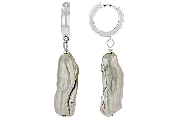 Platinum Cultured Freshwater Pearl Rhodium Over Sterling Silver Earrings. Measures approximately 1 1/4" L x 1/4" W and have hinged backings. Colors, shapes, and sizes may vary.