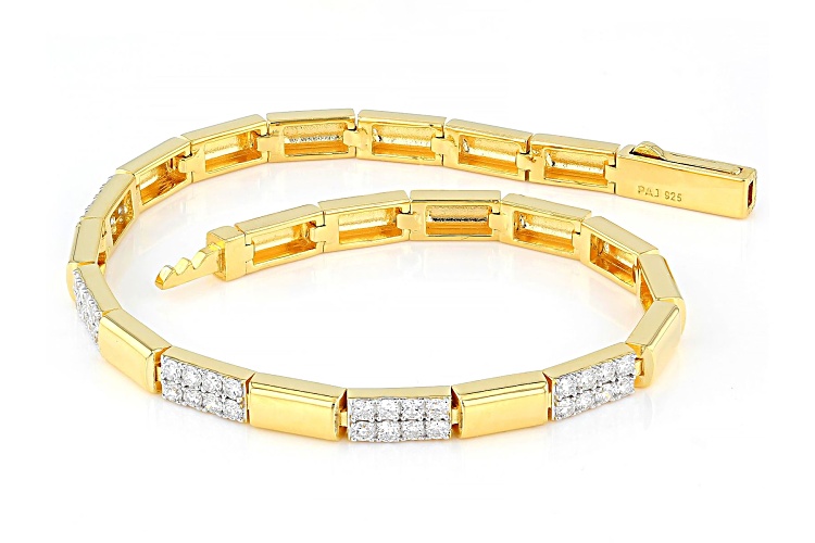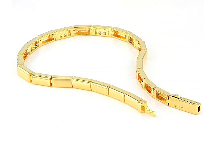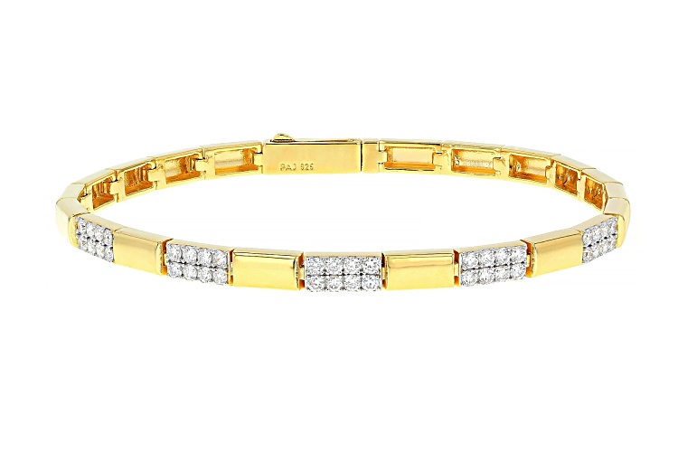 Prazana® Lab-Grown Diamonds 1.00ctw round white lab-grown diamond, 18k yellow gold over sterling silver tennis bracelet. Measures approximately 3/16"W and has a hidden box clasp with push button. G-H color, SI clarity minimum.