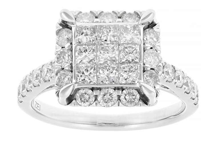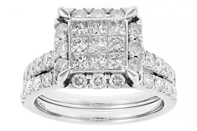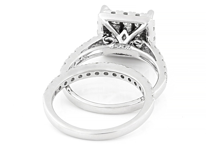 • 2.00ctw Princess Cut And Round White Diamond 10k White Gold Cluster Ring With Matching Band - Size 6