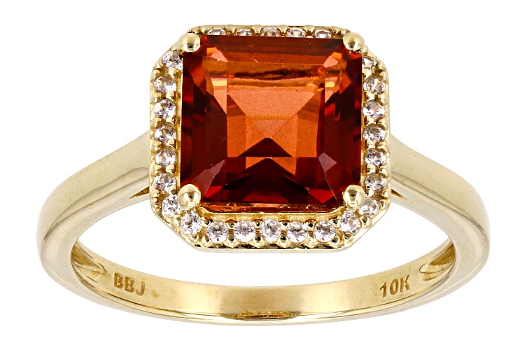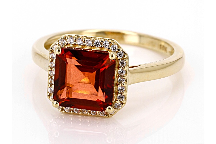 2.13ctw Square Octagonal Red Labradorite With 0.19ctw Round White Zircon 10k Yellow Gold Ring. Measures Approximately 0.45"L x 0.45"W. Accent Stones Primarily Zircon.