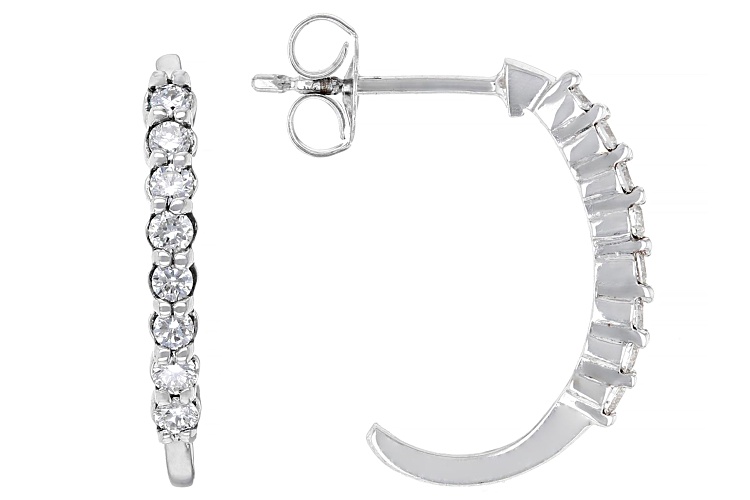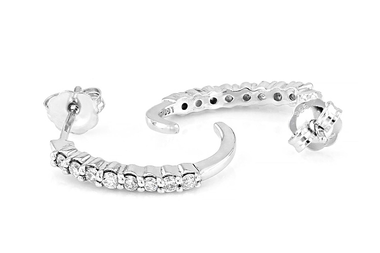 Prazana® Lab-Grown Diamonds 0.25ctw round white lab-grown diamond, rhodium over sterling silver j-hoop earrings. Measure approximately 9/16"L x 1/16"W and have push-back backings. H color, SI clarity minimum.