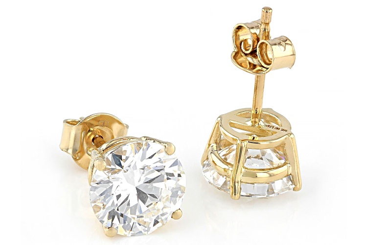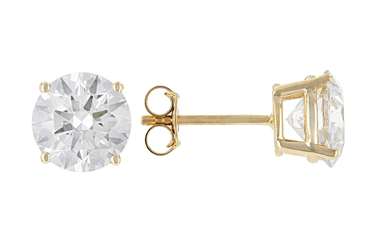 Prazana® Lab-Grown Diamonds 4.00ctw round white lab-grown diamond, 14k yellow gold solitaire stud earrings. Measure approximately 5/16"L x 5/16"W and have push-back backings. G color, VS clarity minimum.