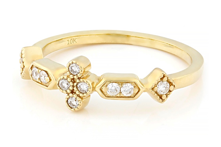0.15ctw Round White Diamond 10k Yellow Gold Band Ring - Size 6