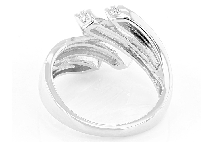 Emulous™ round white diamond accent, rhodium over brass ring. Measures approximately 3/8"L x 1/2"W and is not sizeable.