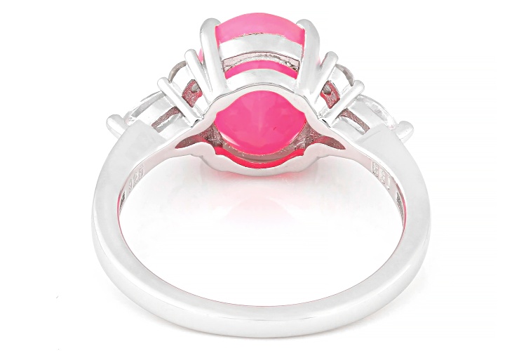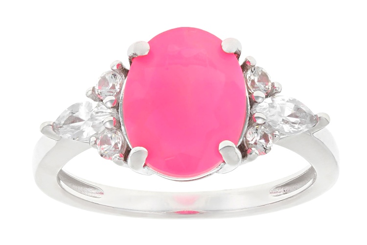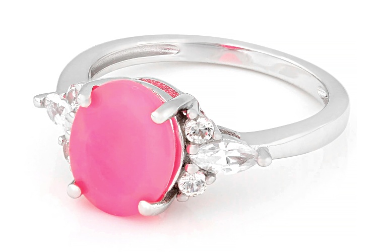• 1.23ct Oval Pink Ethiopian Opal With 0.62ctw White Zircon Rhodium Over Sterling Silver Ring - Size 8