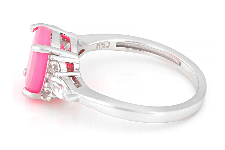 1.23ct Oval Pink Ethiopian Opal With 0.44ctw Marquise And 0.18ctw Round White Zircon Rhodium Over Sterling Silver Ring. Accent stones primarily zircon.