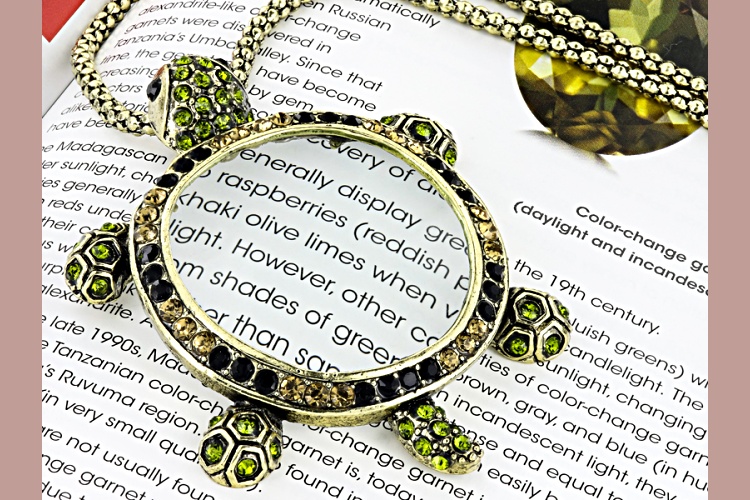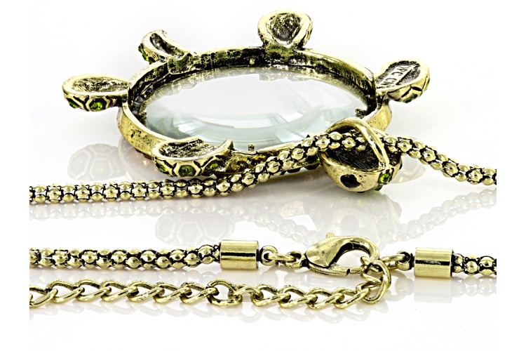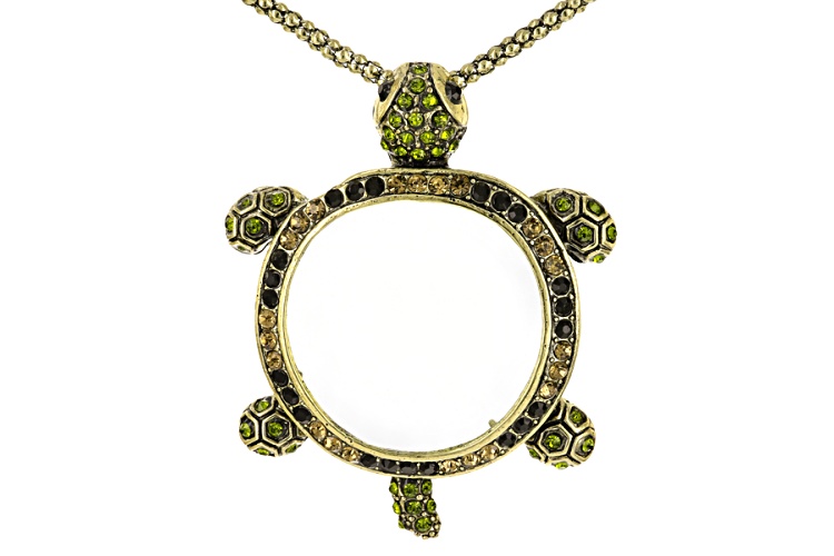 Pre-Owned Off Park ® Collection, round green crystal, round chapagne crystal, round black crystal, antiqued gold tone, turtle magnifying glass necklace. Measures approximately 32"L x 2"W with a lobster clasp closure and a 3 inch extender.. This product may be a customer return, vendor sample, or on-air display and is not in its originally manufactured condition. It may not be new. In some instances, these items are repackaged by JTV.