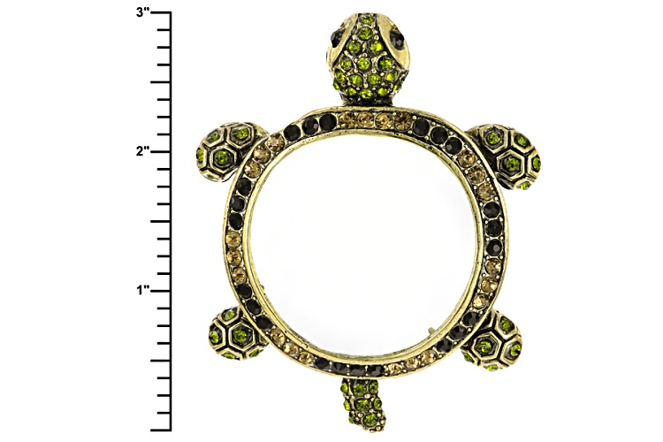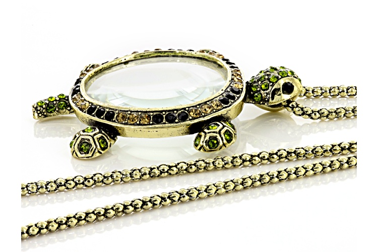 Pre-Owned Off Park ® Collection Multicolor Crystal Antiqued Gold Tone Turtle Magnifying Glass Neckla