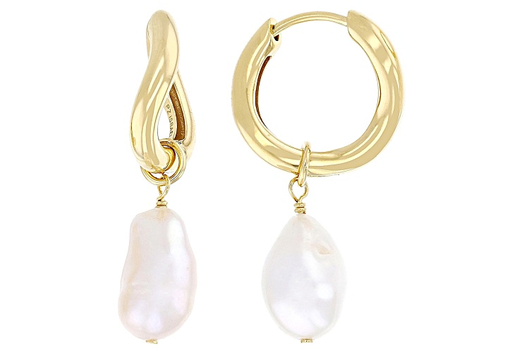 10mm White Cultured Freshwater Pearl 14k Yellow Gold Over Sterling Silver Earrings