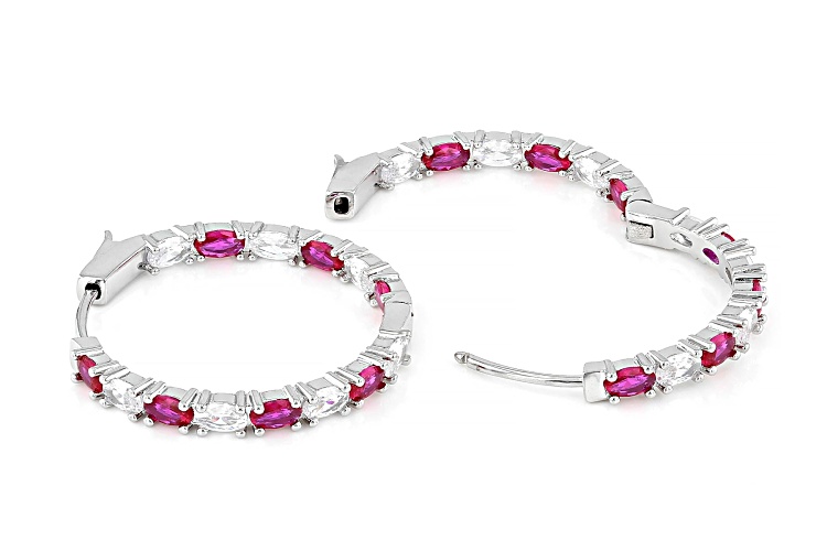 Bella Luce® 8.32ctw Lab Ruby and White Diamond Simulant Rhodium Over Brass Inside-Out Hoop Earrings