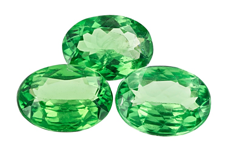 Set of 3 Tanzanian tsavorite garnet 2.35ctw mm varies oval. The gemstone was mined in Tanzania and cut in India.