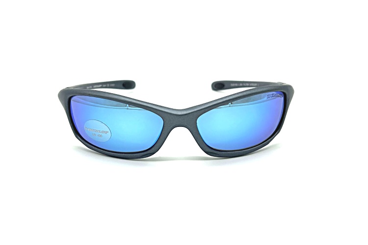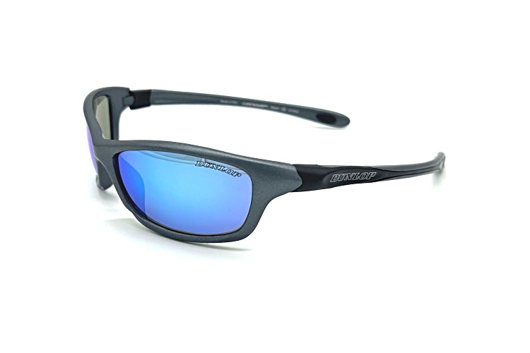 • Dunlop DU163 Matte Gray Wrap Around Frame / Blue Mirrored CAT 3 Lenses Sunglasses