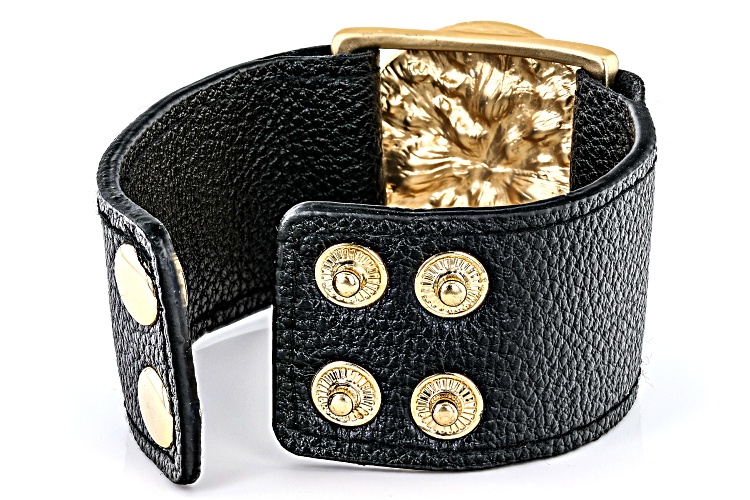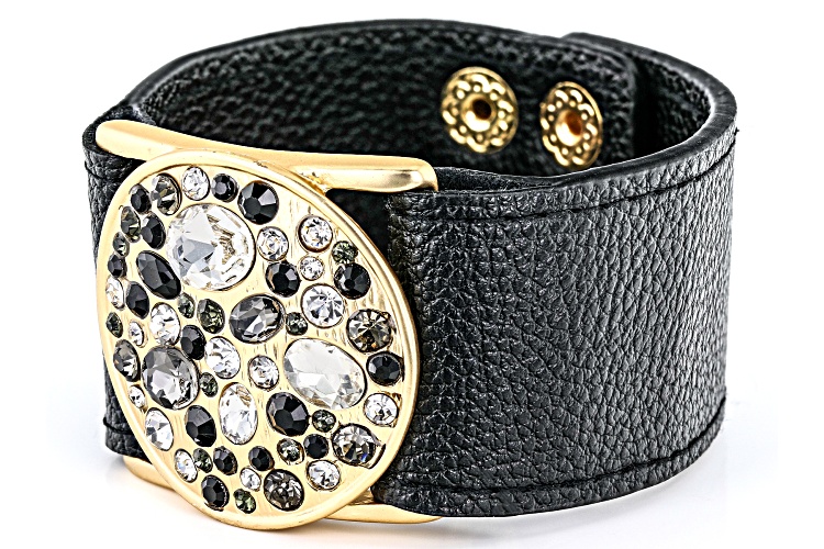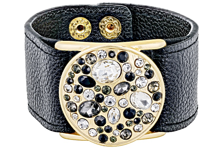 Off Park® Collection Multi-Color Crystal Gold Tone Imitation Leather Bracelet. Measures approximately 6.50"L at the first snap closure , 7.00"L at the second snap closure and 1.46"W.