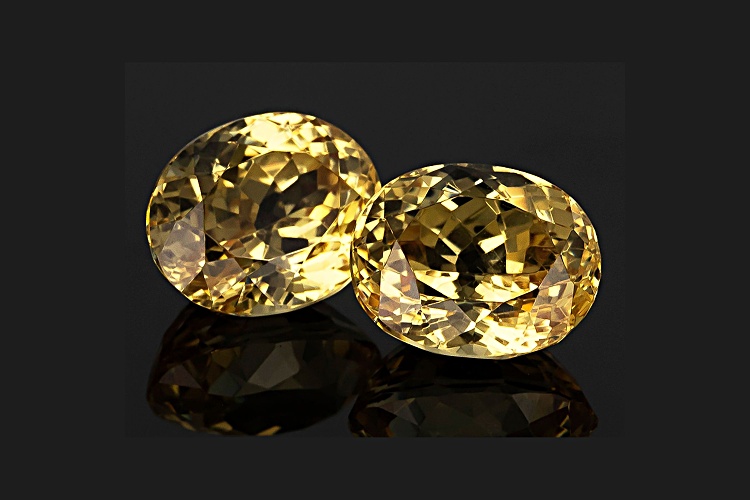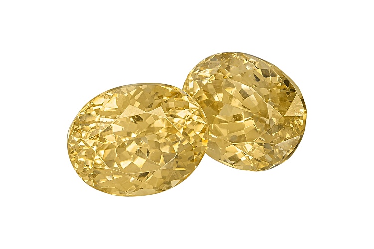 Matched pair of Chinese strong orange yellow scheelite 10.92ctw 9.5x7.5mm oval. The gemstones were mined in China and cut in the United States.