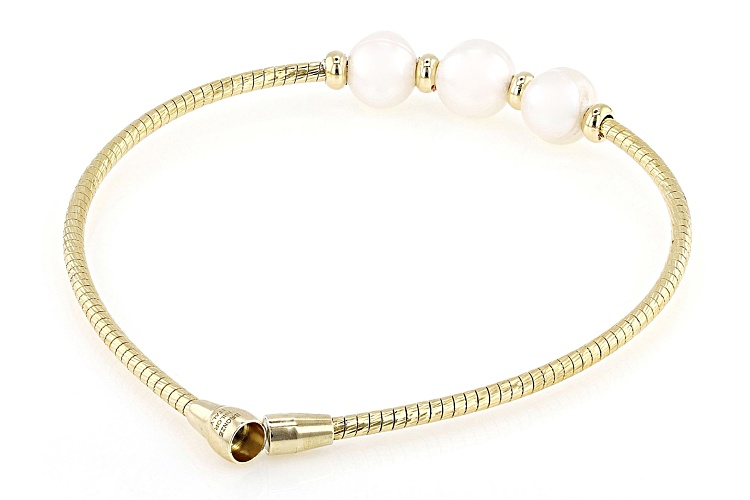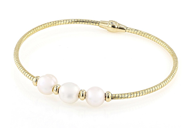 7-9mm White Cultured Freshwater Pearl 18k Yellow Gold Over Bronze & Brass Bracelet - Size 7.25