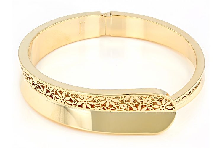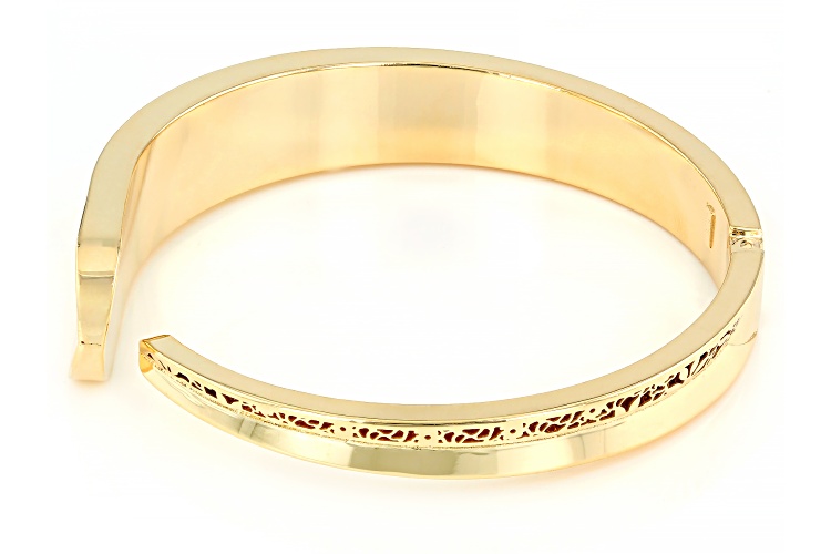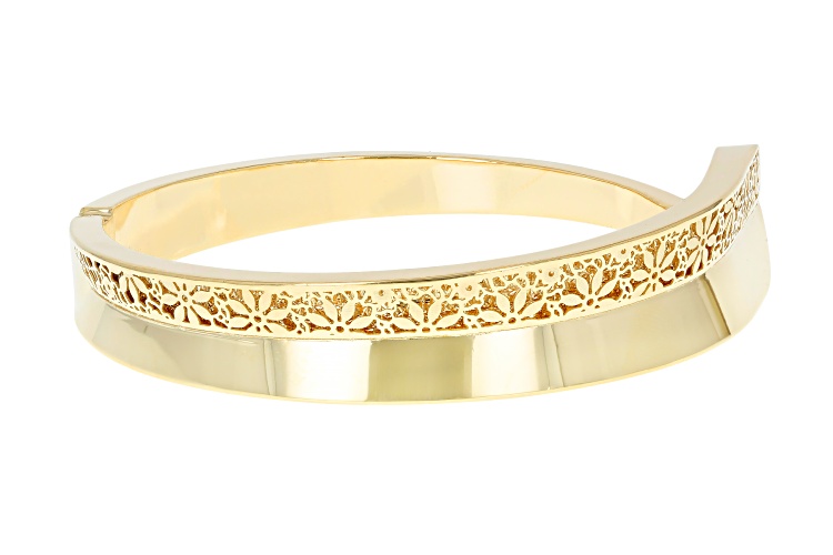 Stefano Oro® 14k Yellow Gold Volta Aurea Ricami Bangle Bracelet. Measures Approximately 9/16"W. Hinged Closure.