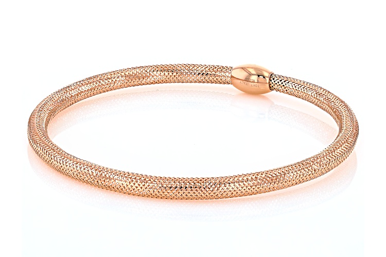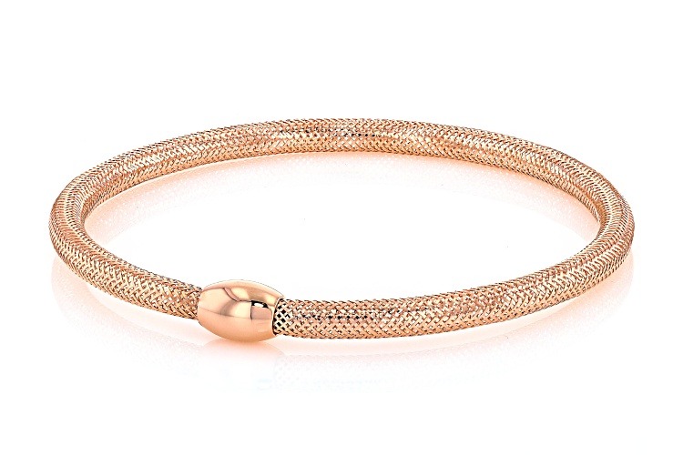 Splendido Italian Jewelry™ 10k Rose Gold Over 10k Gold 3.5mm Mesh "Goccia" Stretch Bangle. Size Small Fits under 7" Wrist. Size Medium Fits 7-7.50" Wrist. Size Large Fits 7.75-8.25" Wrist.