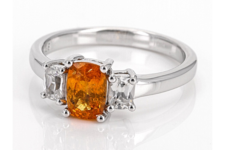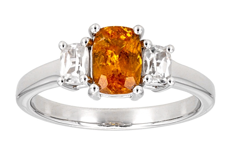 1.08ct Rectangular Cushion Spessartite With 0.30ctw White Zircon Rhodium Over Sterling Silver Ring - Size 9