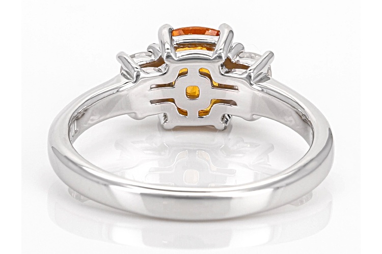 1.08ct Rectangular Cushion Orange Spessartite With 0.30ctw Round White Zircon Rhodium Over Sterling Silver Ring. Measures Approximately 0.43"L x 0.26"W. Not Sizeable. Accent Stones Primarily Zircon.