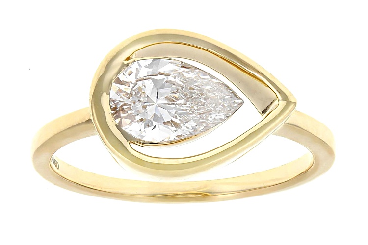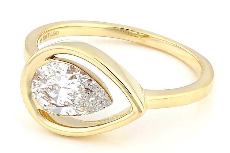 Luminescence by Prazana® Lab-Grown Diamonds 1.00ct pear shape white lab-grown floating diamond 10K yellow gold solitaire ring. Measures approximately 1/2"L x 3/8"W. G color, VS2 clarity minimum.