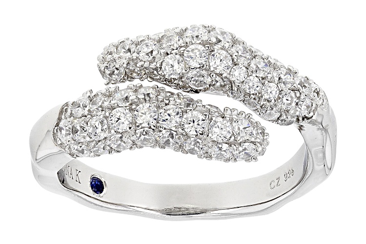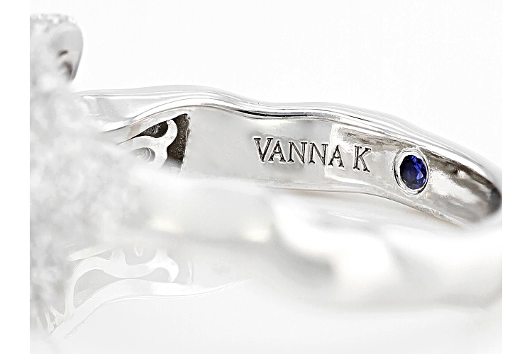 Vanna K™ for Bella Luce® white diamond simulant 2.37ctw round, Platineve® ring. Measures approximately 0.88" L x 0.31" W and is not sizable. Diamond equivalent weight is 1.43ctw. Each Vanna K™ design has a signature label that features a lab created sapphire.