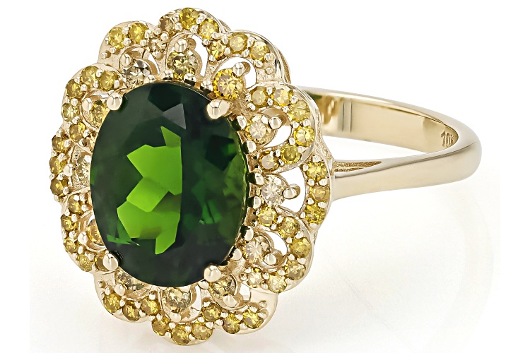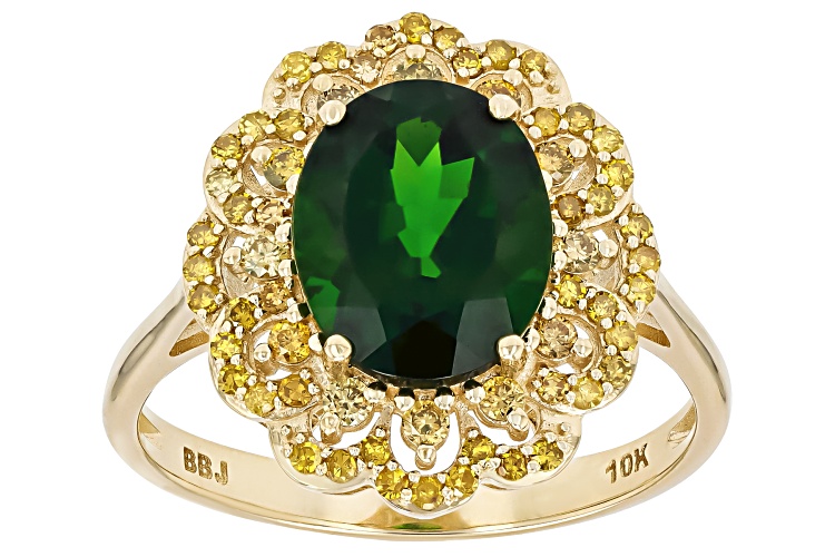 2.30ct Chrome Diopside With 0.41ctw Yellow Diamond 10k Yellow Gold Ring - Size 6
