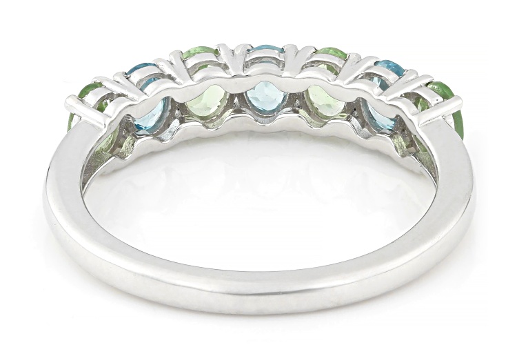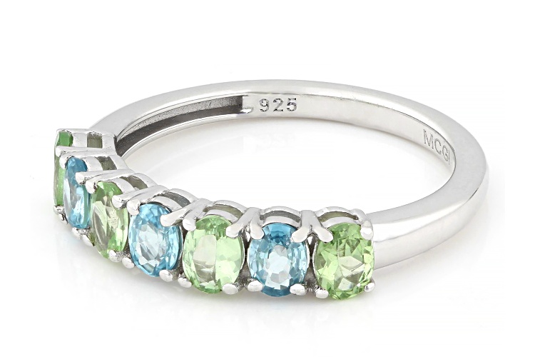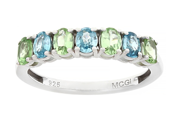 0.61ctw Oval Blue Zircon with 0.63ctw Oval Mint Tsavorite Rhodium Over Sterling Silver Ring. Measures Approximately 0.76"L x 0.15"W And is Not Sizeable