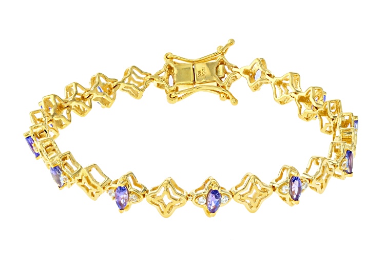 1.76ctw Tanzanite With 0.54ctw White Zircon 18k Yellow Gold Over Sterling Silver Bracelet - Size 7.25