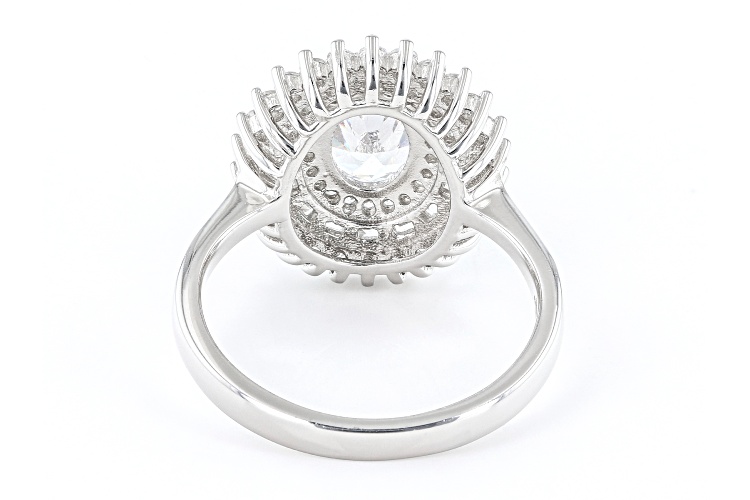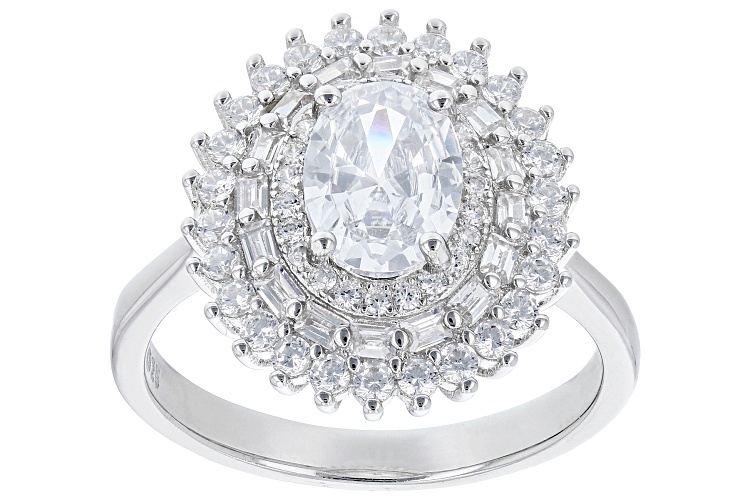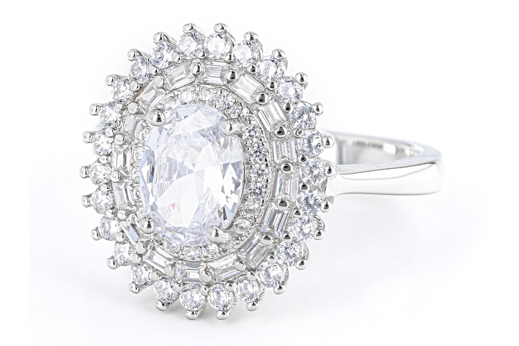 Pre-Owned Bella Luce® white diamond simulant 2.99ctw oval, baguette, and round, rhodium over sterling silver ring. Measures approximately 0.81" L x 0.63" W and is not sizable. Diamond equivalent weight is 1.81ctw.. This product may be a customer return, vendor sample, or on-air display and is not in its originally manufactured condition. It may not be new. In some instances, these items are repackaged by JTV.