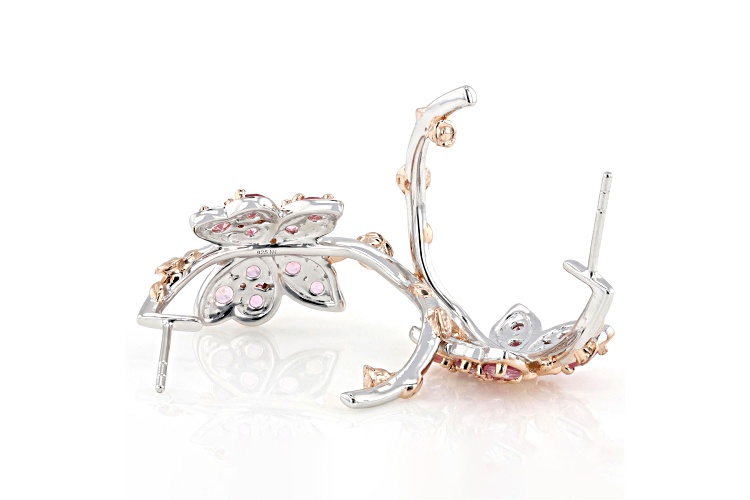 • 2.81ctw Round Pink Spinel Rhodium & 18K Rose Gold Over Palladium Sterling Silver Earrings