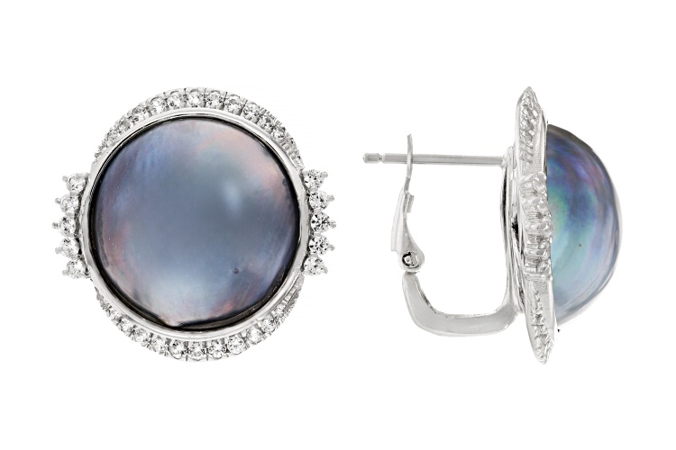 16mm Blue Cultured South Sea Mabe Pearl & Bella Luce® Rhodium Over Sterling Silver Earrings