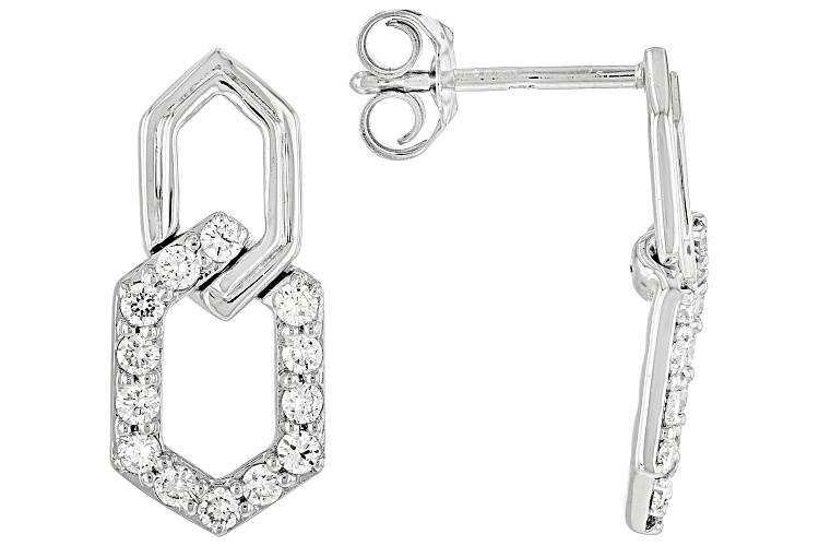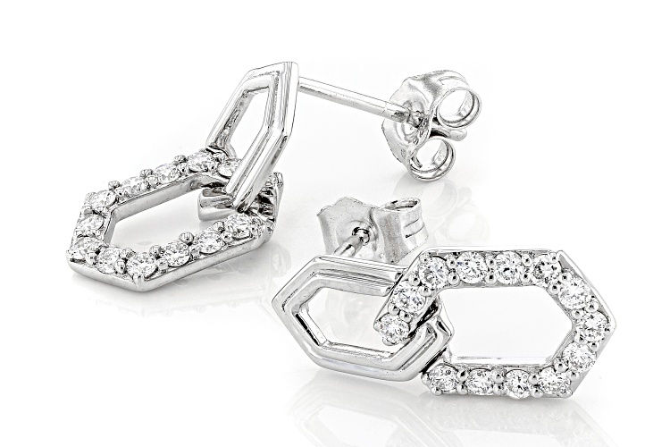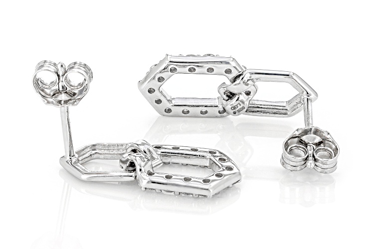 Prazana® Lab-Grown Diamonds 0.50ctw round white lab-grown diamond, rhodium over sterling silver dangle earrings with push back backings. Measures approximately 11/16"W x 5/16"L. The lab-grown diamonds are H color, SI clarity minimum.