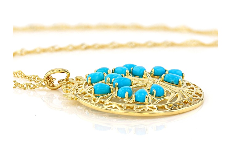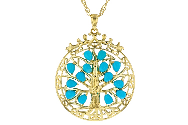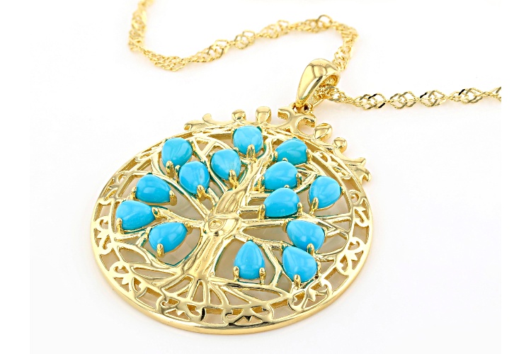 4x3mm Pear Shaped Sleeping Beauty Turquoise 18k Yellow Gold Over Silver Tree of Life Pendant Chain