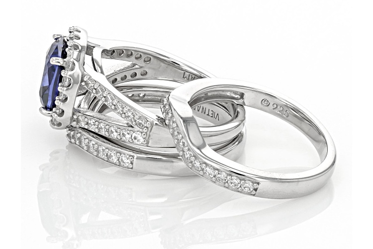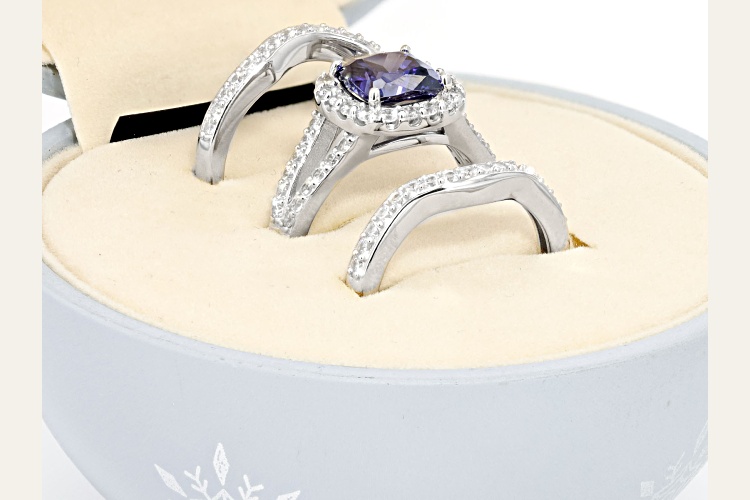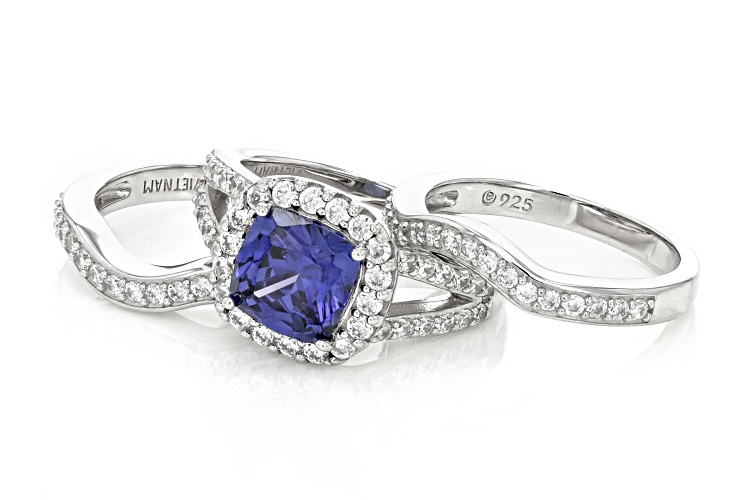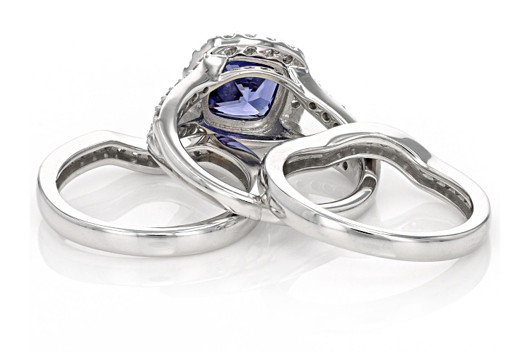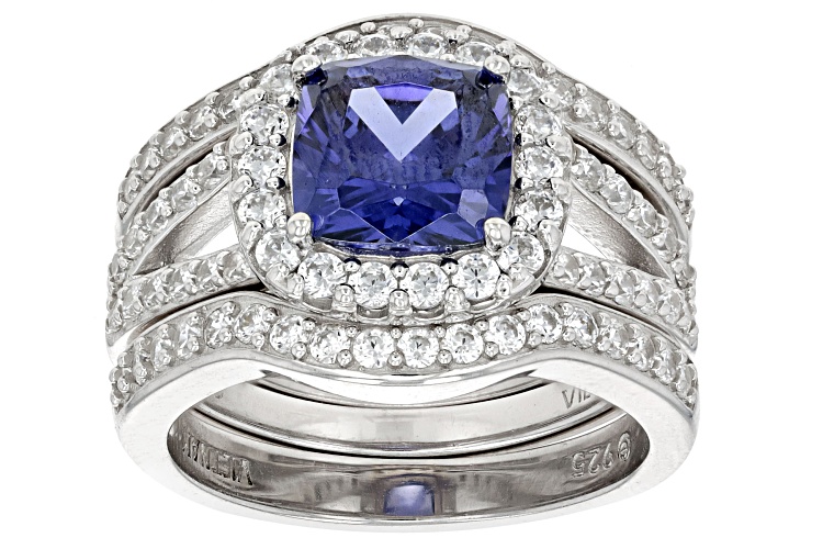 Pre-Owned Bella Luce® Esotica™ tanzanite and white diamond simulants 4.55ctw square cushion and round, platinum over sterling silver holiday ring boxed set. Measures approximately 0.88" L x 0.63" W and is not sizeable. The diamond equivalent weight is 2.75.. This product may be a customer return, vendor sample, or on-air display and is not in its originally manufactured condition. It may not be new. In some instances, these items are repackaged by JTV.