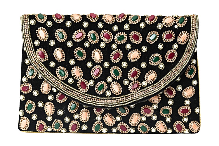 Off Park® Collection, Multi-Color Crystal & Pearl Simulant Gold Tone Black Clutch