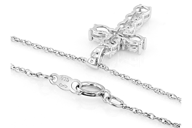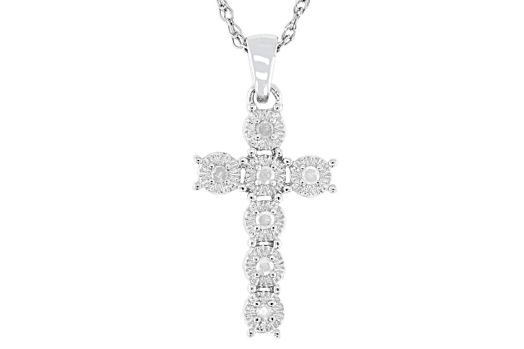• 0.10ctw Round White Diamond Rhodium Over Sterling Silver Cross Pendant With 18