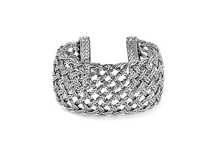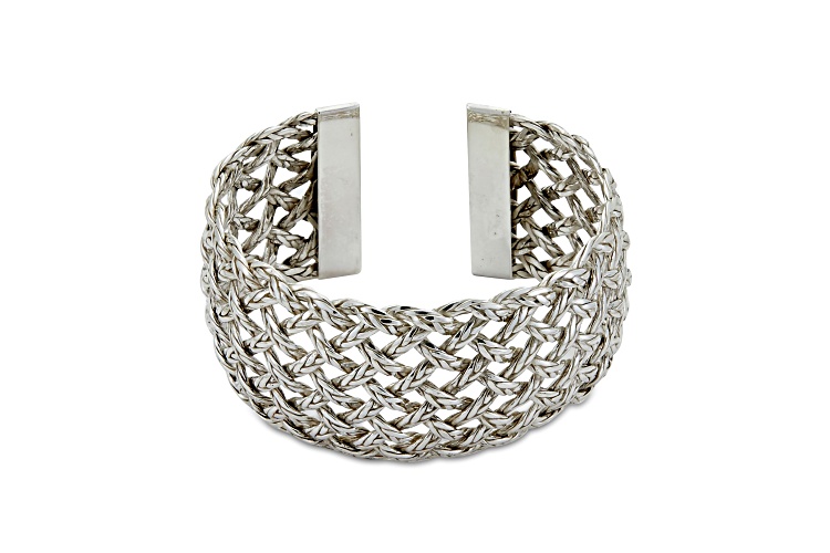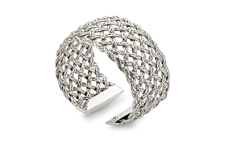 A true work of wearable art, the Sterling Silver Braided & Woven Design Bangle stands out with its bold craftsmanship and award-winning style. This stunning bangle features an intricate braided and woven sterling silver design, showcasing exceptional texture and dimension. Its wide silhouette is both striking and elegant, offering a statement look that remains refined and timeless. Winner of the JCK 2021 Design Award, this piece is recognized for its outstanding creativity, expert technique, and modern luxury appeal.Crafted for comfort and impact, the open cuff design allows for easy wear while ensuring a secure fit on the wrist. Whether worn as a standalone statement or layered with slimmer bangles for contrast, this piece adds sophistication and strength to any ensemble. Ideal for collectors and connoisseurs of fine design, this bangle is not just jewelry—it's a celebration of artisan mastery and timeless style.