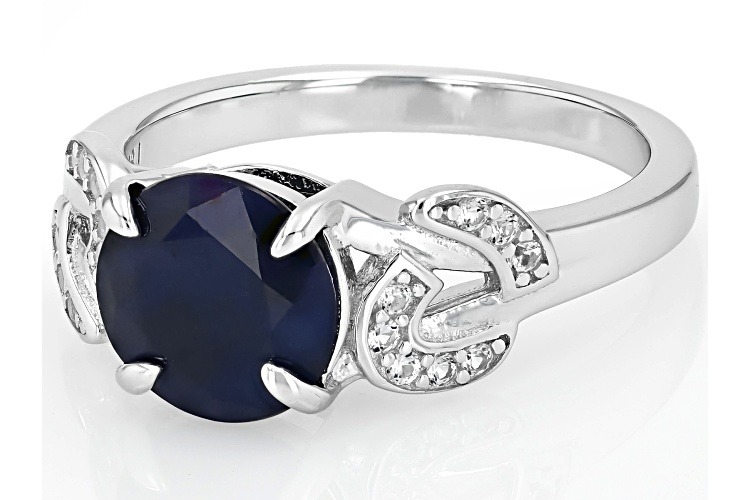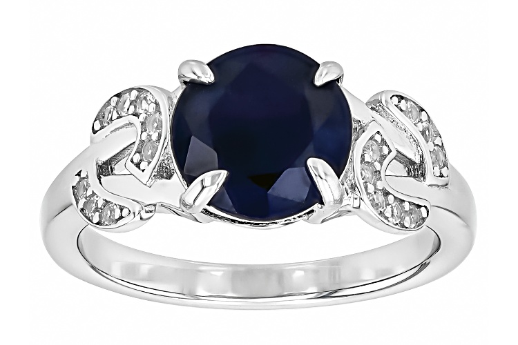 • 2.66ct Blue Sapphire With 0.12ctw Lab Created White Sapphire Rhodium Over Sterling Silver Ring - Size 10