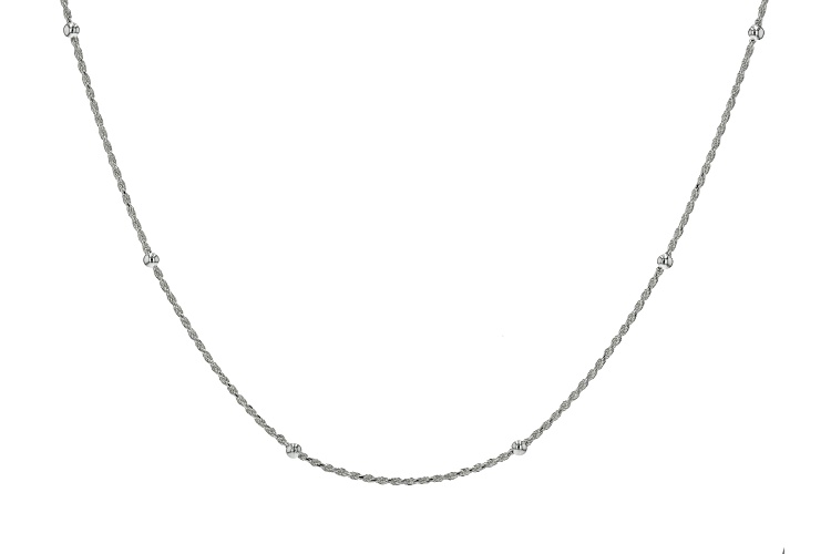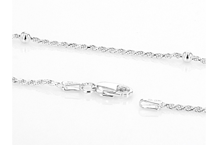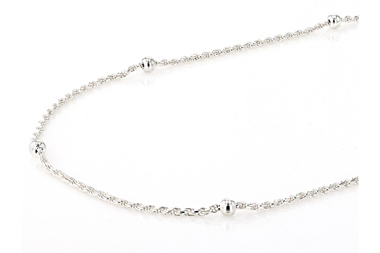 Sterling Silver 3mm Bead Station Rope Link 20 Inch Chain - Size 20