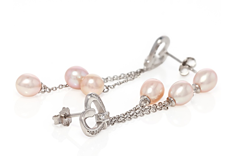 6mm Pink Cultured Freshwater Pearl With Bella Luce® Rhodium Over Sterling Silver Earrings