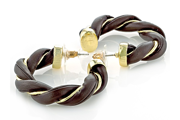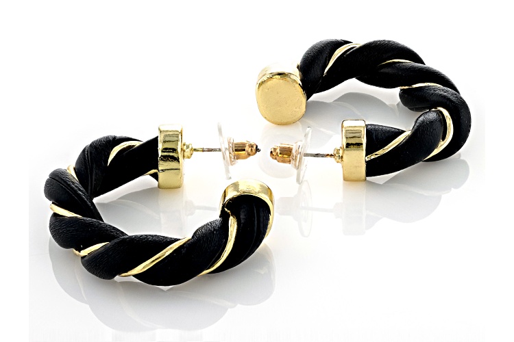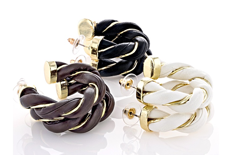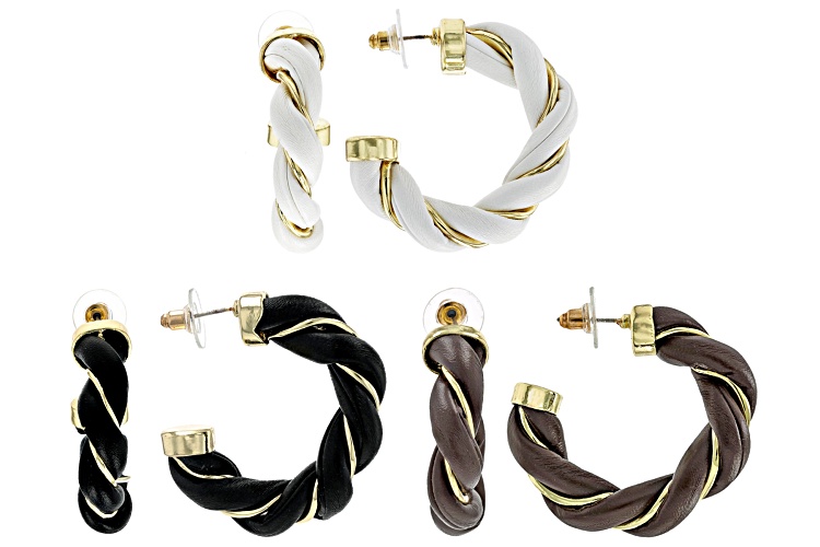 Off Park® Collection Imitation Leather Gold Tone Set of 3 Twisted Hoop Earrings. Measures Approximately 1.63"L x 0.32"W. Push Back Backings.