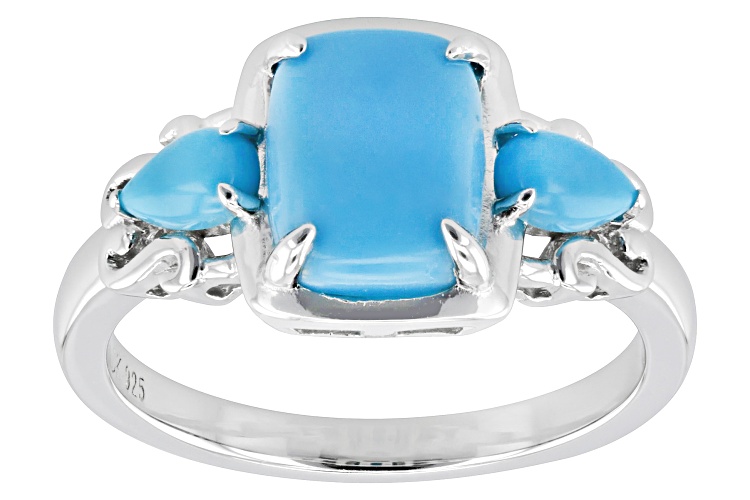 9x7mm Rectangular Cushion Sleeping Beauty Turquoise Rhodium Over Sterling Silver Ring - Size 10