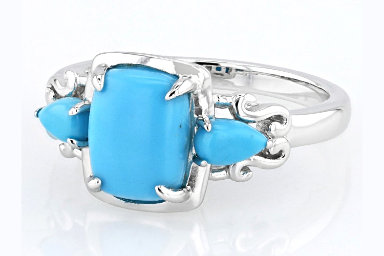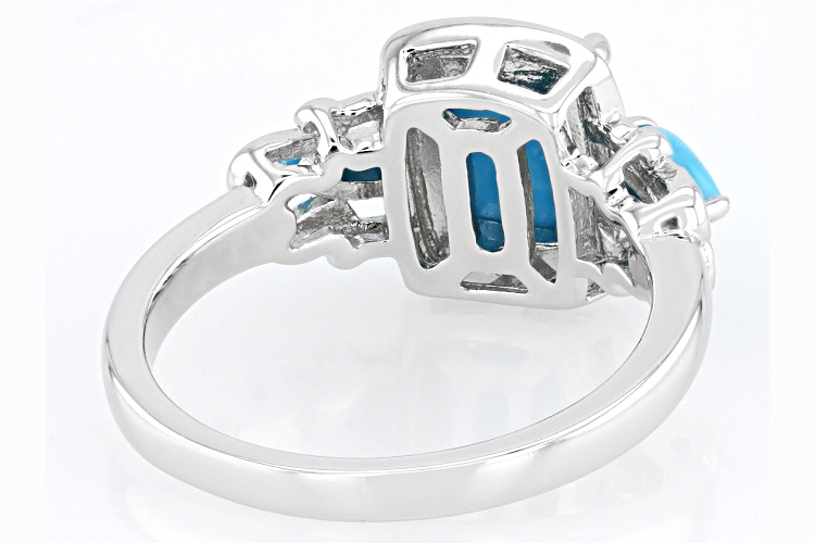 9x7mm Rectangular Cushion and 5x3mm Pear Shape Sleeping Beauty Turquoise Rhodium Over Sterling Silver Ring. Measures Approximately 0.71"L x 0.41"W. Not sizeable.