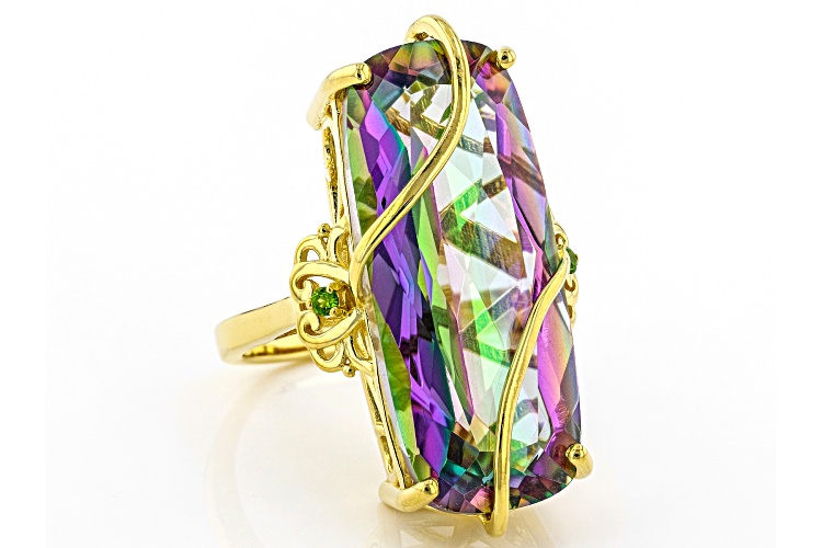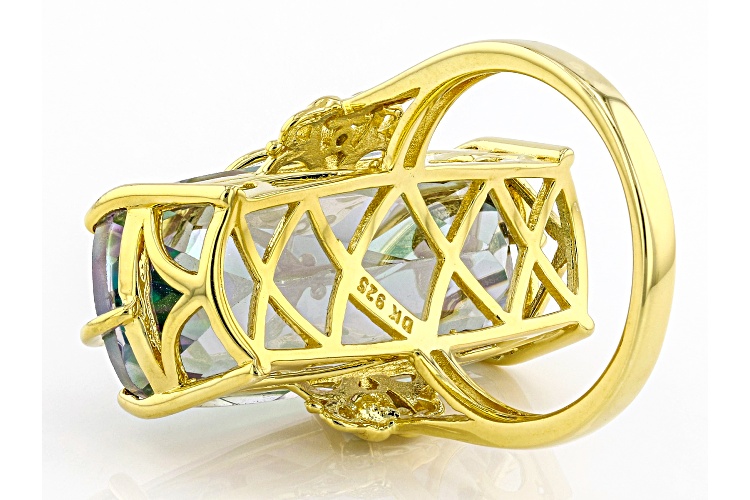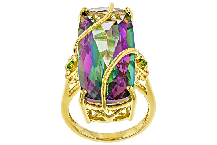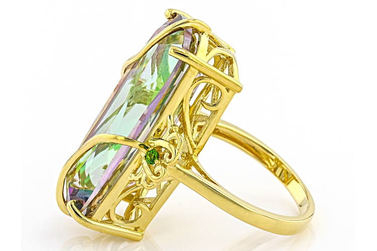 17.85ct Cushion Multi-Color Quartz With 0.05ctw Chrome Diopside 18K Yellow Gold Over Silver Ring - Size 8
