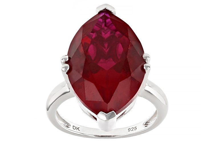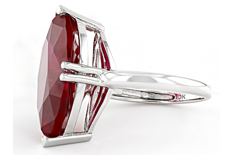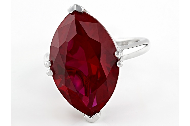 12.75ctw Lab Created Ruby Rhodium Over Sterling Silver Ring - Size 8