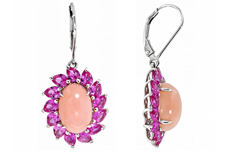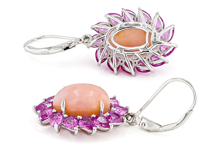 12x8m Pink Opal With 3.97ctw Lab Created Pink Sapphire Rhodium Over Sterling Silver Earrings