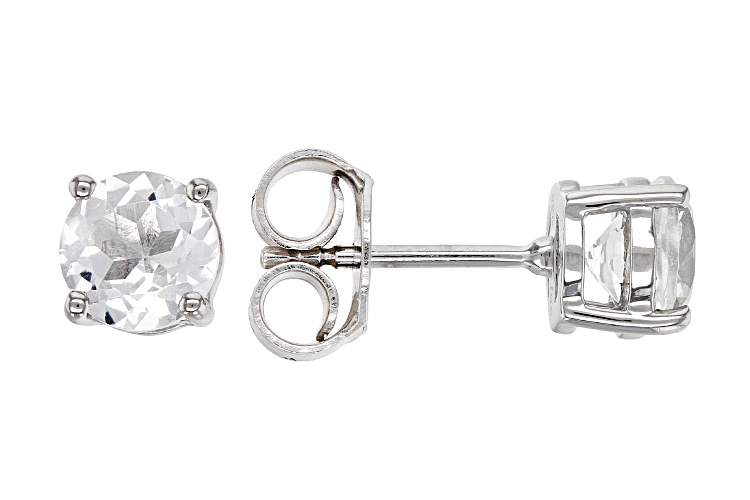 1.70ctw Round White Topaz Rhodium Over Sterling Silver April Birthstone Stud Earrings. Measures Approximately 0.23"L x 0.23"W. Push Back Backings.